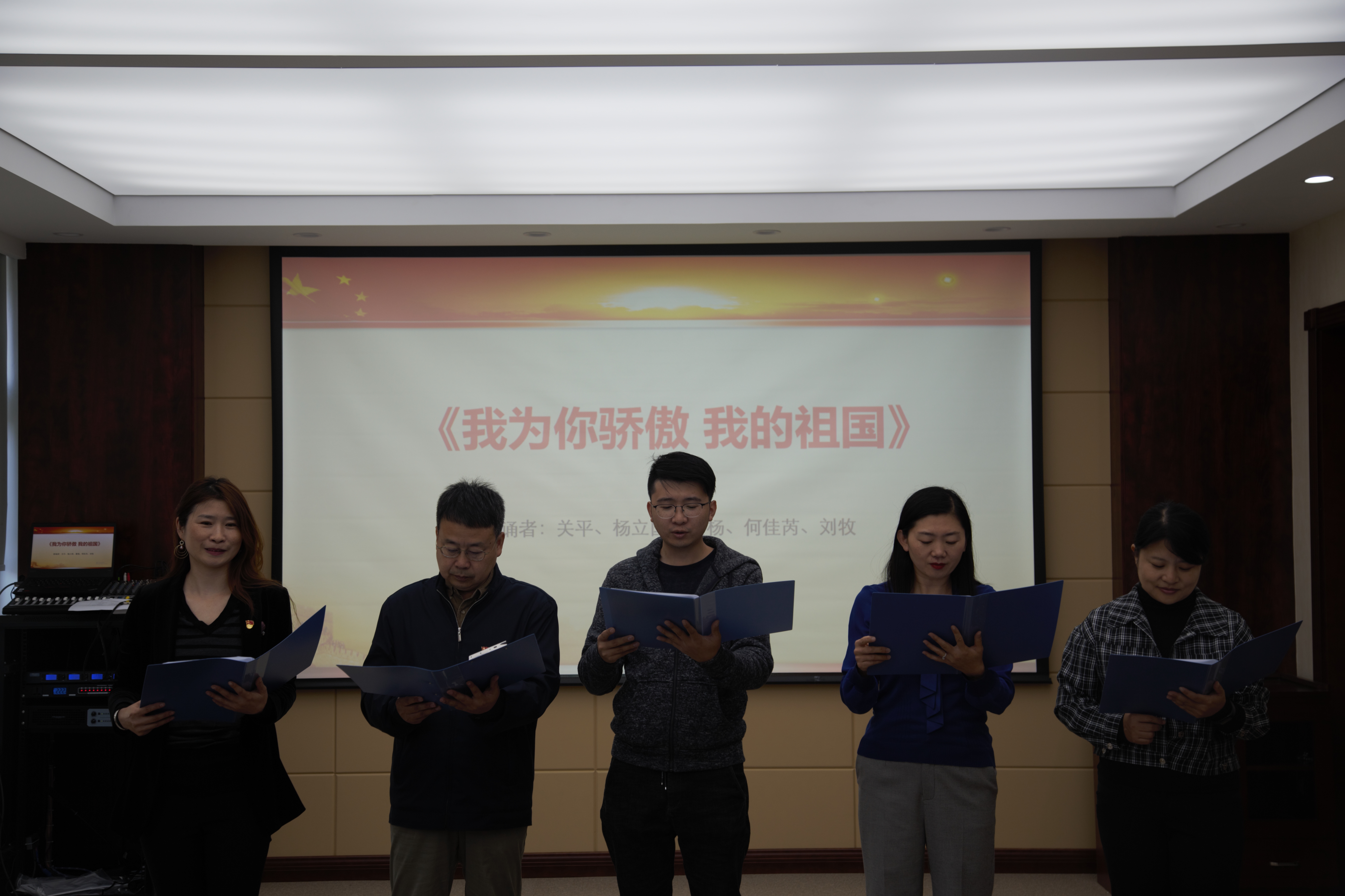 岁月流转,穿越五千年历史,栉风沐雨,见证70载中华荣光。为进一步开展好“不忘初心、牢记使命”主题教育,大力弘扬爱国主义精神,马克思主义学院于10月9日下午在多功能厅举办了“师生党员接力朗诵赞祖国”主题党日活动,师生党员及入党积极分子共30余人参加,旨在用诗的语言,歌的情怀抒发马克思主义学院师生对伟大祖国的热爱之情,用最真挚的感情为中华人民共和国成立70周年献礼!