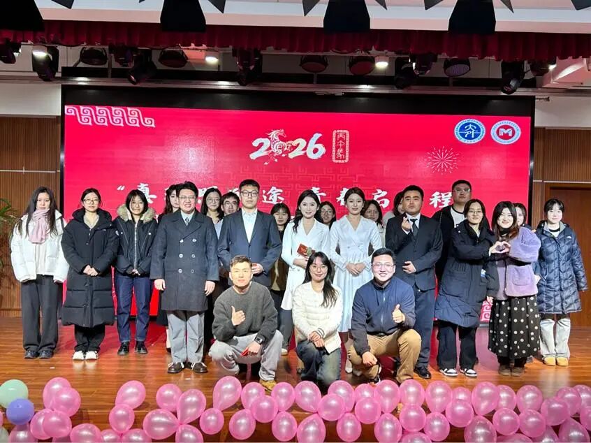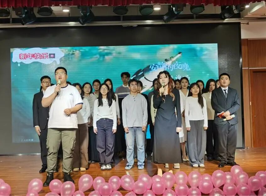 为热烈欢迎2025级新生加入马克思主义学院大家庭,展现马院学子的青春风采与精神风貌,搭建师生交流互动的平台,2025年12月23日,大连外国语大学马克思主义学院“真理照研途,青春启新程”主题文艺汇演如期举行。马克思主义学院党总支书记李宁、副院长董杨、校人事处副处长张洪铭、党总支副书记李晓溪出席活动,由2025级硕士研究生李欣雨、董梓悦、刘硕、杨司文同学担任本次汇演主持人。整场汇演气氛热烈、精彩纷呈,在欢声笑语中圆满落幕。