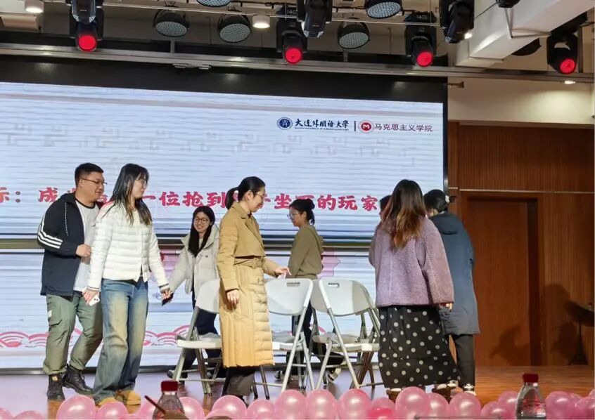 互动游戏环节是本次汇演的欢乐源泉,《抢凳子》《不要做挑战》《你来描述,我来猜》《“岁月如歌·新老碰撞”师生猜歌名》《反向指令》等趣味游戏接连上演。《抢凳子》的紧张争抢、《不要做挑战》的爆笑反应、《你来描述,我来猜》的默契考验、师生猜歌名的跨代际共鸣、《反向指令》的逆向思维比拼,让现场欢笑声、呐喊声此起彼伏。师生们积极参与其中,在游戏里相互配合、彼此互动,不仅增进了师生之间的了解与情谊,也让新生们快速融入到马院的温暖集体中。