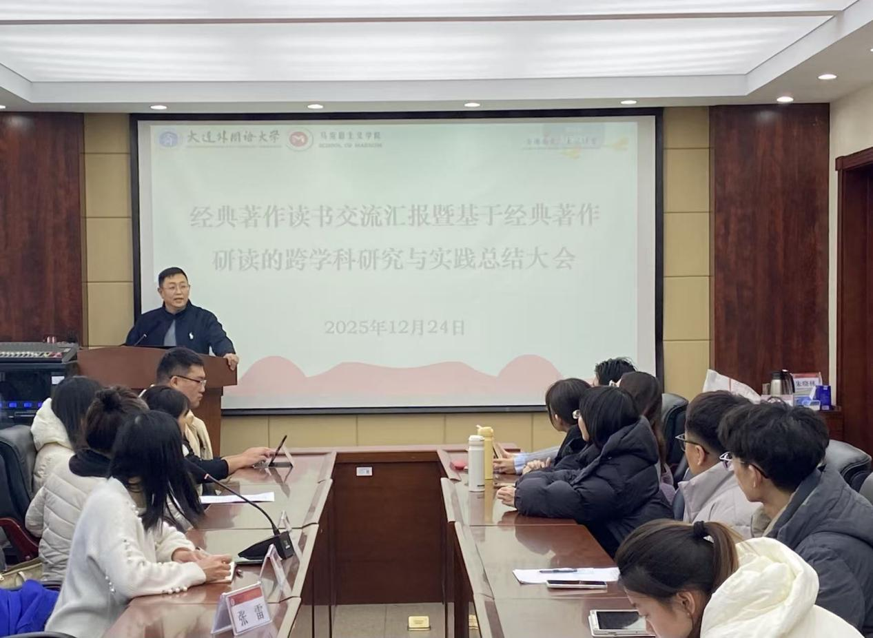 为进一步推动马克思主义经典著作读书活动更加走深走实,提高研究生经典著作研读能力,促进马克思主义理论学科高质量发展,马克思主义学院于12月24日举办了“经典著作读书交流汇报暨基于经典著作研读的跨学科研究与实践总结大会”。会议由马克思主义学院副院长张雷主持,马克思主义学院董杨副院长、研究生教研室主任张艳宏教授参与了本次活动。